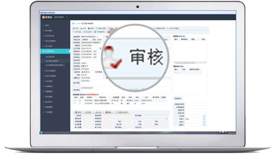 打单人员根据报关资料上内容录入系统,输入相应信息,更加简便快捷,默写信息在接单时输入过,这环节就无需重复输入,直接跳过,也可先上传附件(相关报关资料),暂时保存,拉出校验单,交复审人员。