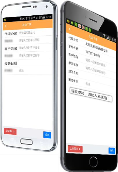 随时随地通过“悠易达APP”客户端进行下单,只需输入相应的“代理公司”,“单位名称”“报关日期”,也可以事先上传相应的报关资料。